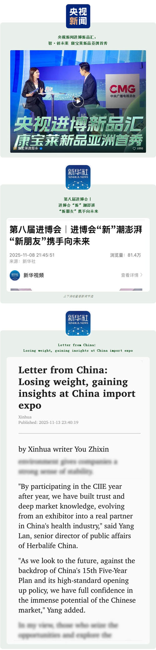 八度赴约,初心不改。在刚刚落幕的第八届进博会上,康宝莱以“智·创未莱”为主题,携两款亚洲首秀新品及30余款体重管理产品再度亮相,展现其深耕中国市场的坚定决心与创新实力,成为本届进博会健康展区一抹亮眼的色彩。多家主流权威媒体发声,让我们一睹风采。